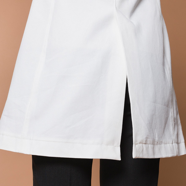 左肩下にある聴診器ポケットがドクターである存在を表現したデニム素材の白衣コートです。